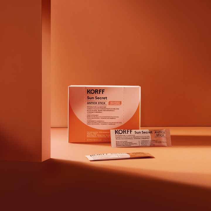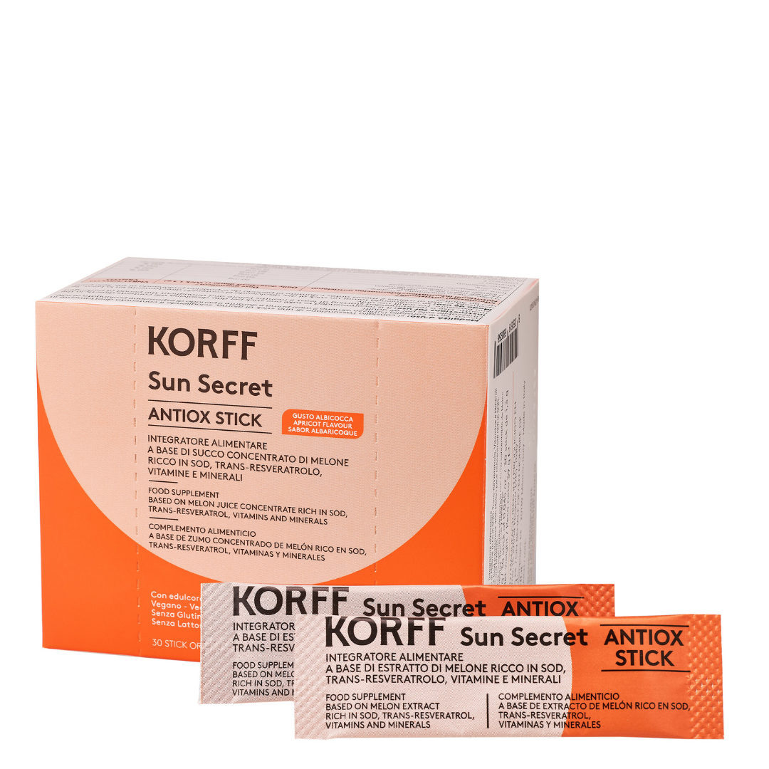 Orodispersible food supplement with Melon juice concentrate rich in Superoxide Dismutase (SOD), Trans-Resveratrol, Vitamins and Minerals. Selenium, Zinc, Vitamins C and E contribute to the protection of cells from oxidative stress.